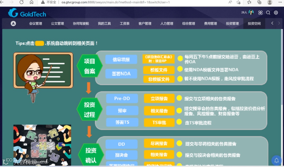 例如,在项目备案过程中,相关人员可通过定制模板签署NDA。从预尽调、预审、签署投资意向书,再到投决、签订投资协议、定期投后管理直到最后项目退出,形成基于集团业务特色流程的全生命管理。