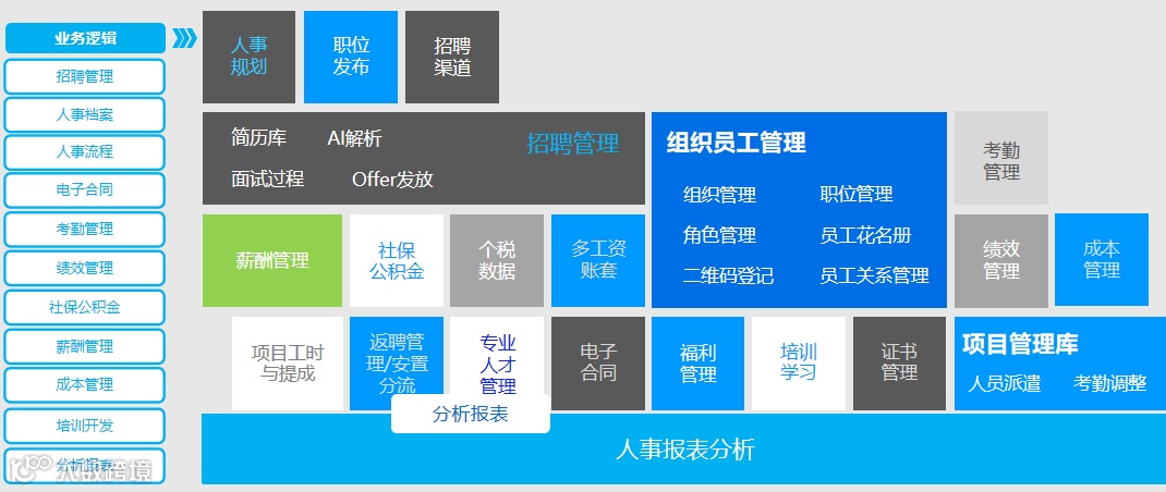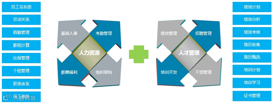 致远互联人事管理整体业务与功能集合图