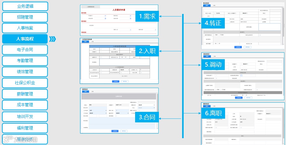 首先进入人事模块,看看各部门都有哪些人提交了离职流程,再通过报表统计界面,获取公司人员整体数据情况以及各部门到职、离职和职位空缺等情况,并与往年数据(如:主动离职数据、不合格辞退或是高端人才离职等数据)进行在线比对。根据大数据分析结果与建议,以及各部门的反馈信息,分析离职原因。