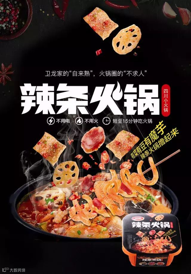 5月29日,卫龙食品官微发布新品“自来熟”辣条火锅。火锅为一人份,材料丰富,包含豆皮、中式腊肠、魔芋爽、火锅粉、土豆、莲藕、海带、木耳,15分钟沸腾后即可享用。
