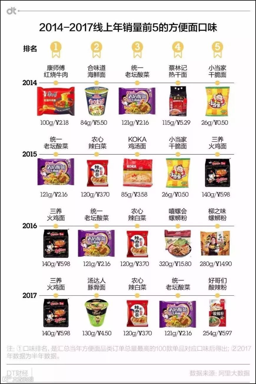 据阿里大数据统计,三养火鸡面在2016年、2017年上半年连续成为线上年销量第一的方便面口味。