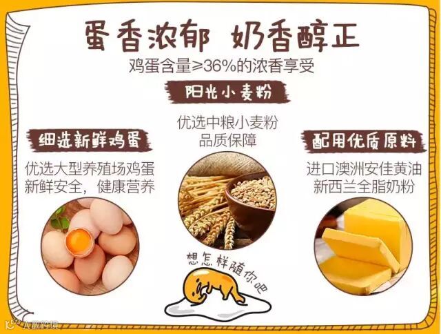 百草味这款长崎蛋糕是联合网红IP蛋黄哥一起面世的,“软趴趴”既是蛋黄哥的卡通形象,也是这款蛋糕食用体验,口感柔软。同时,因为高于36%的鸡蛋含量和融合了澳洲黄油新西兰全脂奶粉,所以这款长崎蛋糕蛋香浓郁,奶香醇正。