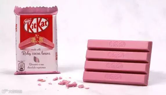 雀巢公司今天表示,其英国公司正在推出一款红宝石巧克力版本的标志性四指KitKat。该公司称自去年9月份发布以来,红宝石巧克力已引起全世界巧克力鉴赏家的极大兴趣。据悉,红宝石巧克力是继黑巧克力、牛奶巧克力和白巧克力之外的第四种巧克力,由红宝石的可可豆做成,具有浓郁浆果的果香味道,没有任何颜色的添加。红宝石巧克力今年早些时候在日本和韩国售卖,如今欧洲的第一站是进入英国。
