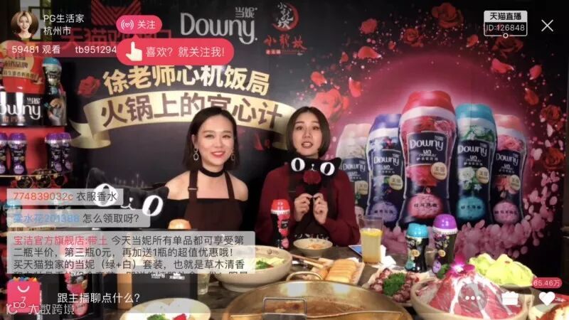 另一个合作方是网红火锅店小龙坎。在2017年12月20日天猫欢聚日之际,当妮联合小龙坎、深夜发媸博主徐老师做了名为“徐老师的饭局:火锅上的宫心计”的直播,总曝光超过百万,消费者边看边买,买了产品也买了品牌。