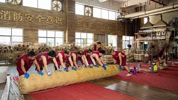“嘿哟——”穿透晨雾的号子声里,制茶师们目光如炬,手势如磐。他们踩着百年传承的韵律,在竹篾编织的天地间演绎着力与美的交响。脚底匀净的力道与胸中铿锵的节奏完美契合,每一滴坠入茶篾的汗珠都化作滋养茶魂的甘露。当那支直径盈尺、重达万两的巨型茶柱在众人注视中渐次成型,时光仿佛在此刻凝固——竹篾上凝结的不仅是茶汁,更是安化黑茶文化的厚重积淀。