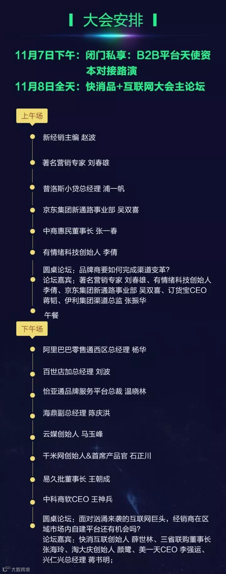 2017(第三届)快消品+互联网大会将于2017年11月份在重庆举办,大会将紧密围绕“新势力,新生态”主题,邀请国内1000+经销商,500+品牌商,200+家B2B平台的创始人,100+投融资机构,共同探寻跨界融合的新篇章!
