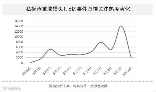 一、私拆承重墙损失1.6亿事件舆情传播热度演化以及舆情传播话题分析