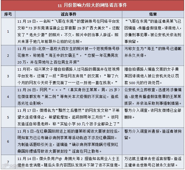 社交媒体平台、短视频平台成为谣言滋生的重灾区。这不仅是由于这些平台拥有数量庞大且媒介素养良莠不齐的用户,短视频自身碎片化内容拼接的特质,迎合了受众信息传播与接收的偏好;而且这些平台中的自媒体对流量追逐、流量变现有着“狂热”的追求。因此,为了获得流量的关注,他们一方面不惜利用网络中不相关的图片、画面,对这些画面进行别有用心的解读,编造具有争议性、且颠覆伦理、能引发受众关注的故事内容,形成关注度。就像11月份发生典型的三起“开局一张图,内容全靠编”的谣言事件,凭借图片画面造谣“老夫少妻”、“海王中的女霸王”、“异性网友奔现”,捏造根本不存在的信息内容,在短视频平台都获得了极大的流量关注。另一方面,不少自媒体依托于当下疫情背景、名人身份等进行谣言编造,其中疫情病例的造谣、王健林去世的造谣完全就是依靠具有普遍关注度的事和人进行的谣言制造,而这些谣言所形成的关注能量也是不言而喻的。