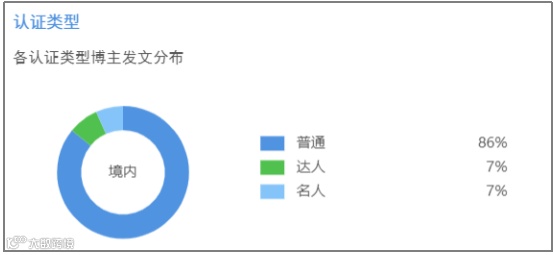 根据鹰击系统对新浪平台的数据分析,如上图所示,网民言论主要来自微博的草根阶层(普通+达人),占93%,对信息传播的覆盖率较广。其余言论来自微博的名人博主,占7%。