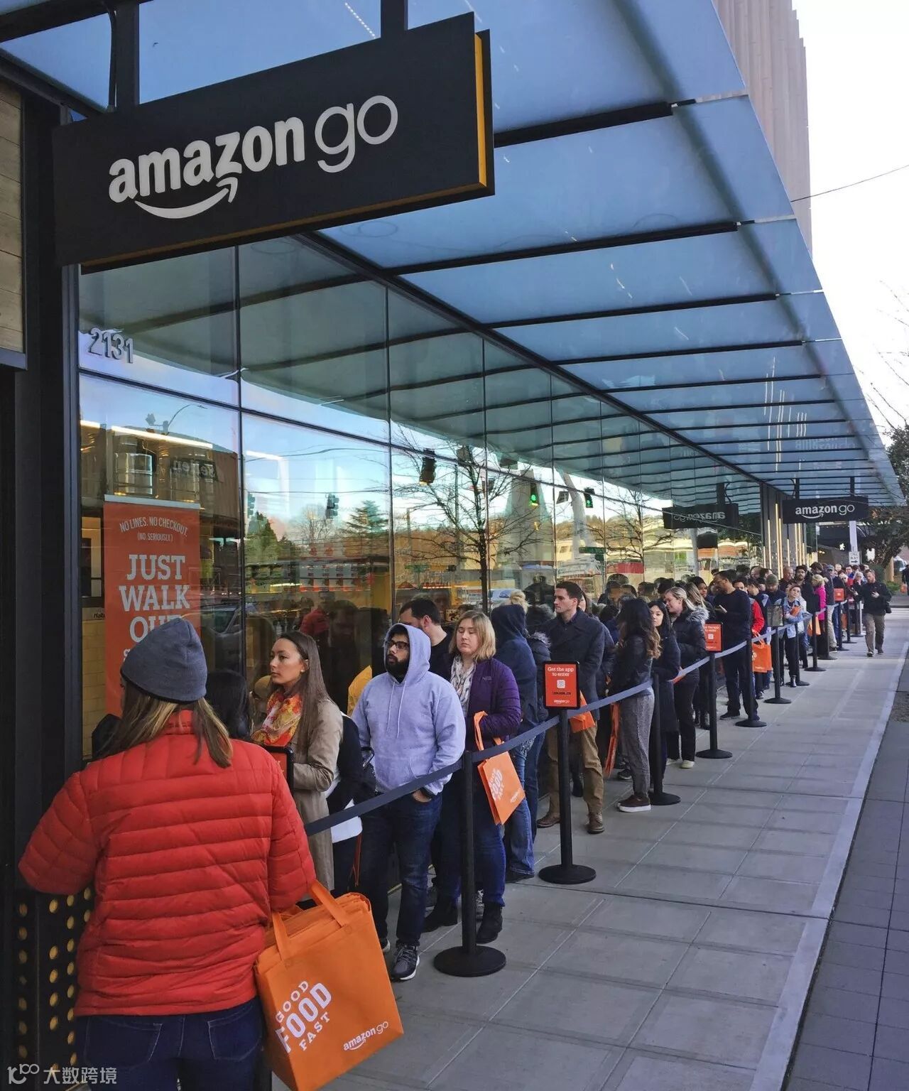 店里是不用排队结账,但是想要进入Amazon Go,却得排队等待……
