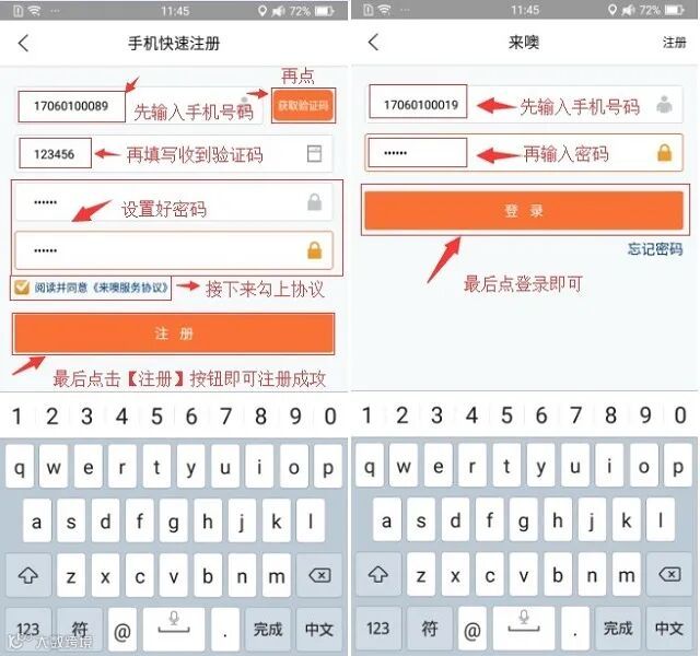 第二步 点击首页的底部菜单栏“我”进行注册、登录,如下图所示: