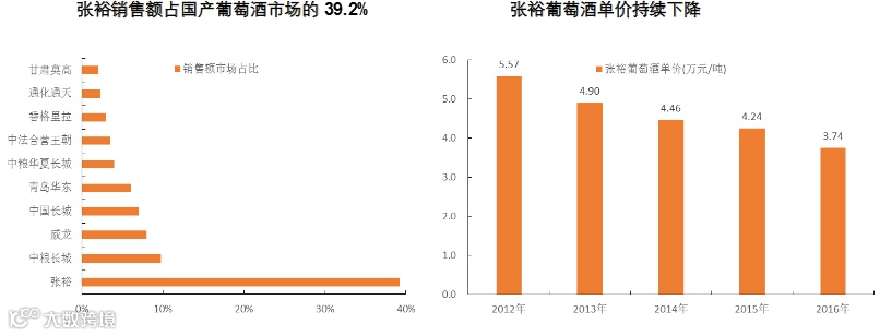 1)国产葡萄酒经历多年的深度调整,需求从商务&礼品逐渐转变为个人消费,而价格也日益亲民,继续挤压的空间已经不大。以龙头张裕为例,葡萄酒吨价从12年5.57万元/吨降至16年3.74万元/吨。