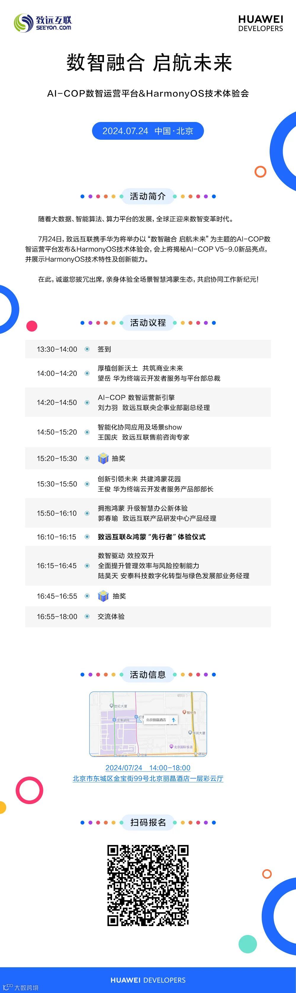 【参会指南】数智融合 启航未来—7月24日邀您参加AI-COP数智运营平台&HarmonyOS体验会 致远北京