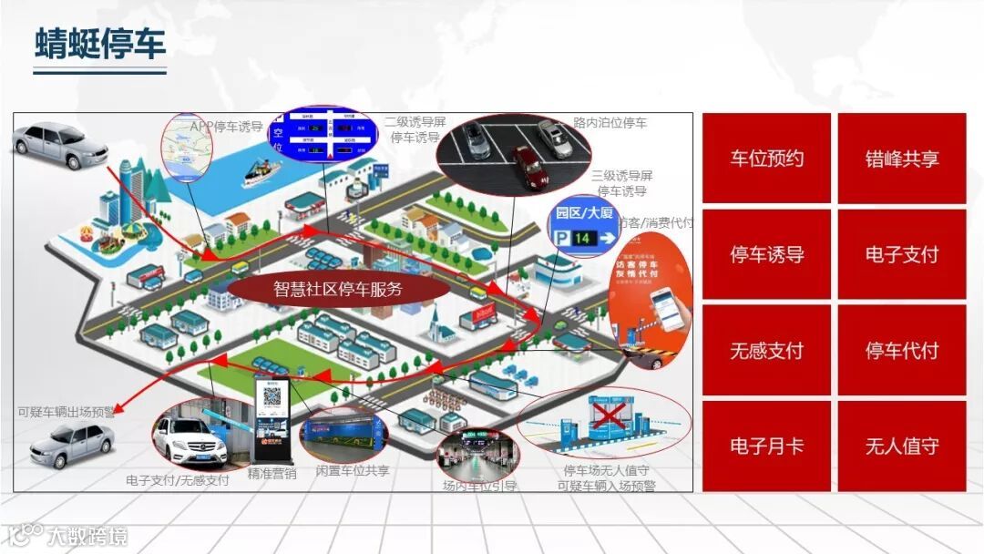 通过蜻蜓停车的停车诱导、无感支付、车位预约、错峰共享、电子月卡、停车代付等功能,为社区实现智能化停车服务升级,实现停车泊位资源的有效利用,带来业主停车体验、社区车辆出入管理的提升,实现社区停车智能化。