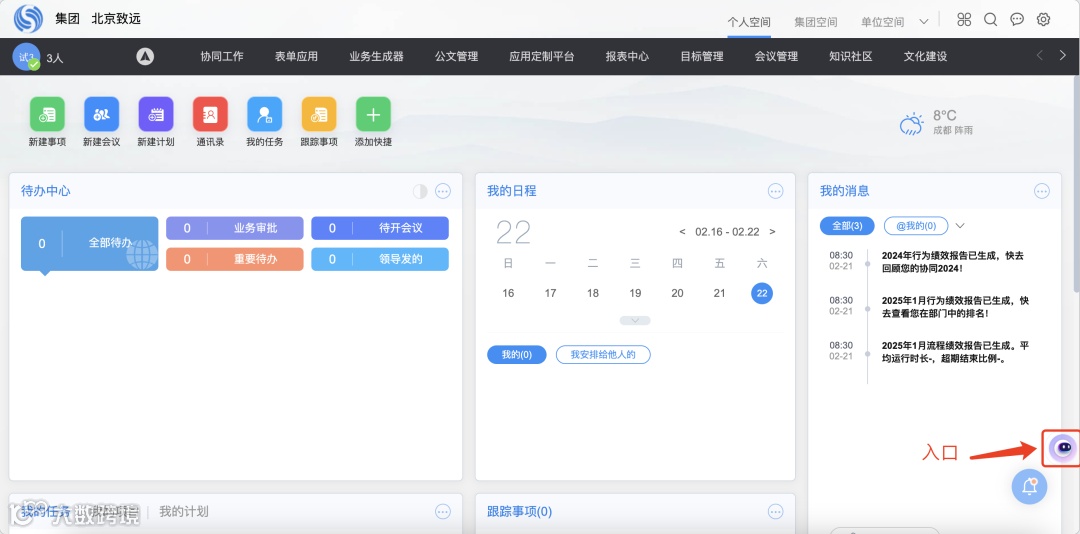 通俗说:我们将以前网页访问AI网站进行提问和获得答案的交互内置到协同办公系统内,让协同办公系统内的员工直接使用这套问答交互。产品明确支持接入DeepSeek等AI模型,具体使用哪种模型产品由客户自己决定。