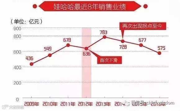 我们认为是娃哈哈崛起至432亿元品牌过程里一直没有解决的真正问题:产品!