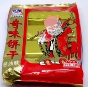 小时候十分喜欢吃九州奇味的葱油饼,香香脆脆,总能让人想到奶奶油锅里的葱油饼。而包装上的那个寿星公也成为了童年记忆里继“旺旺”、“娃哈哈”之外的一个人物形象之一。