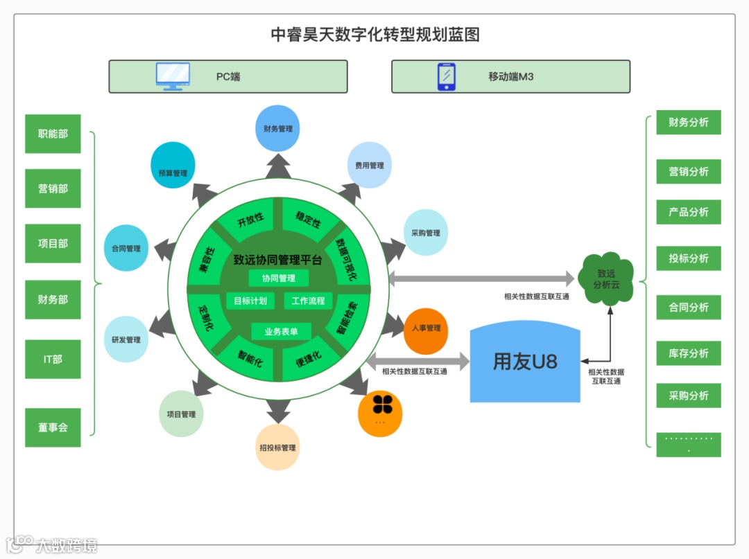 此外,通过致远互联分析云的功能加持,进一步加强企业对数据整理与分析能力,提供有效且有力的数据支撑,为企业经营决策赋能,助力中睿昊天实现数字化转型创新升级。