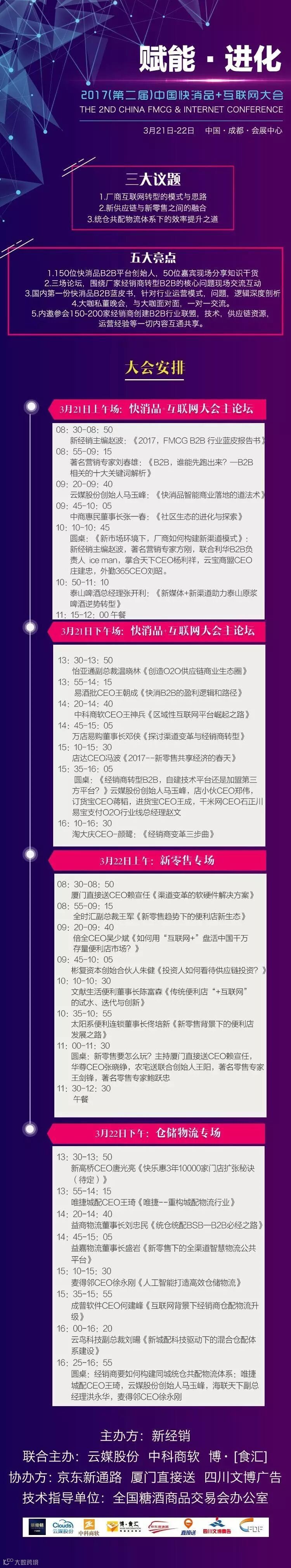 我们在今年3月份成都春糖期间21-22日举办主题为:《赋能·进化,第二届快消品+互联网大会》。