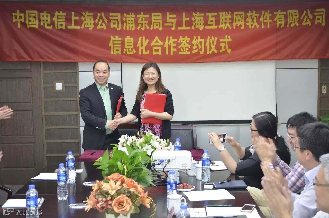6月14日下午,上海互联网软件有限公司(以下简称“上海互软”)与中国电信上海公司浦东局(以下简称“浦东电信”)战略合作签约仪式在上海互软举行。浦东电信局长杜军先生、副局长钟乐女士、服务处副处长黄凯涛先生,上海互软总裁宋朝光先生、副总裁张登火先生、总裁助理黄倩倩女士与信息化建设相关负责人出席了签约仪式。