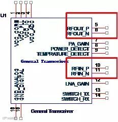 我们对收发器输出的差分信号用平衡器处理得到单端信号RFOUT,来自低噪声放大器的接收信号RFIN用分立元件处理得到差分信号RFIN_P,RFIN_N。