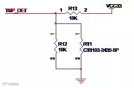 图3-12中的RT1是热敏电阻,当环境温度改变时,自身的阻值会发生变化,这样,显而易见,TMP_DET的值就会发生变化。
