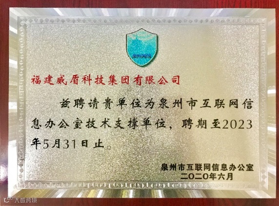 2020年6月19日下午,泉州市网信系统网络安全技术支撑单位授牌仪式在泉州举行。经过初审、专家评审、公示等多轮遴选,福建威盾科技集团荣获“泉州市网信系统网络安全技术支撑单位”称号。