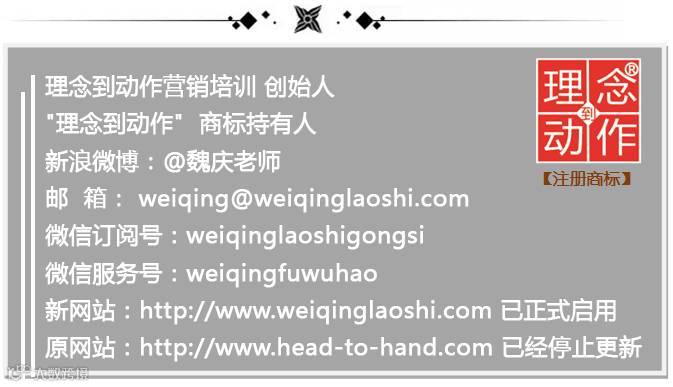声明:魏庆老师的培训咨询业务是全国直营(直接对企业客户签约),没有跟任何一家培训中介公司或代理机构合作。除了本公司官方网站http://www.weiqinglaoshi.com和微信订阅号weiqinglaoshigongsi公告信息外,任何渠道传播的有关魏庆老师的培训咨询业务信息,均未获授权,请诸位企业客户周知。