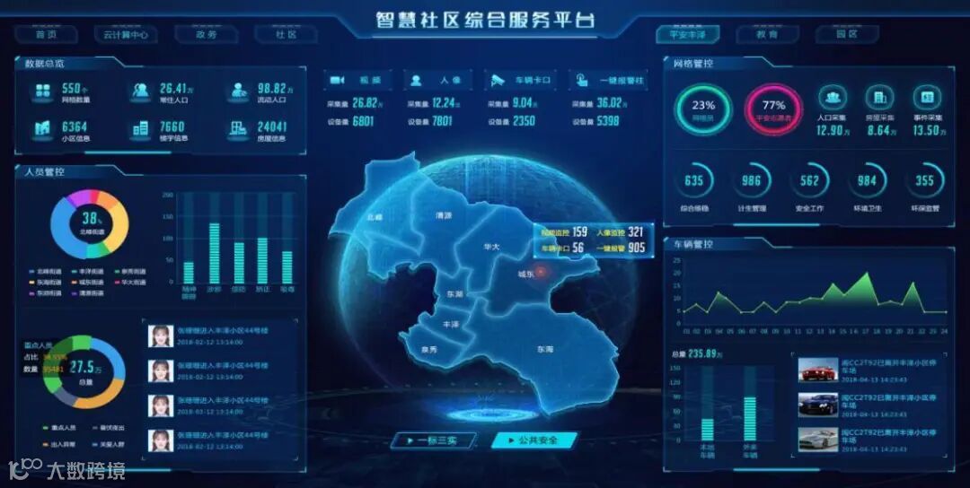 (智慧社区综合服务平台对社区内车流、人流进行实时管控)