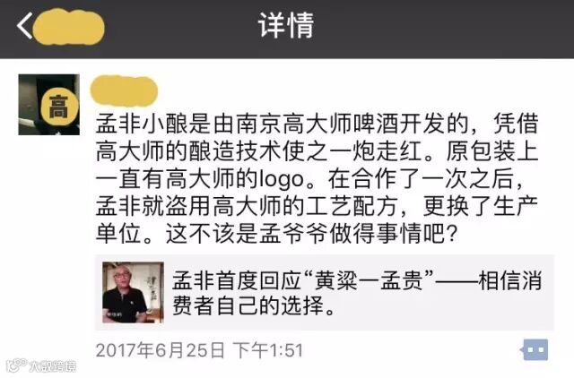 高大师意识到,自己的秘制配方八成被偷了!他立马声明:新的孟非小酿和我们无关。