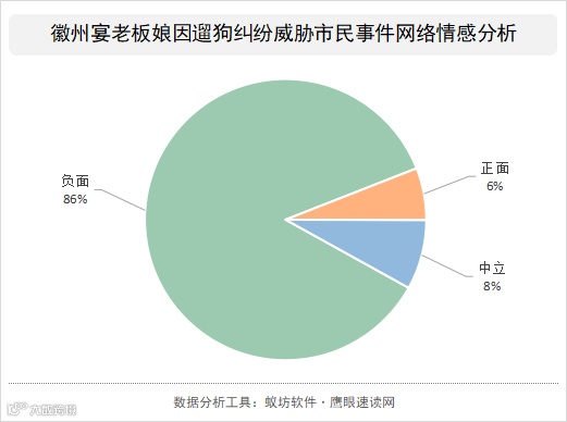 7月2日晚间@1024专员 发布网友投稿,称女子自称是安徽蚌埠绿地中央广场徽州宴的老板娘,狗在小区里咬了别人家孩子,还叫嚣如果欺负她家狗,就杀了人家孩子!说别人家孩子不如她家狗,号称她开了几家酒店了,家里有几千万,赔的起……这条新闻发布之后,开始在网络中发酵。7月3日各大自媒体的持续发文,推动网络事件传播热度的不断上升。7月4日,一些媒体介入该事件的传播,报道了该事件的进展“徽州宴回应老板娘遛狗威胁市民,谴责其个人言行,解除聘用关系”。而7月5日,“自称徽州宴老板娘遛狗威胁路人女子被行拘”的信息被媒体报道,网络传播热度相对较低。7月6日,警方通报涉事双方均被行拘。与此同时,徽州宴的大量订单被退。7月7日,徽州宴老板替老婆公开道歉,但是这一道歉网友并不买账,妻子犯罪为何丈夫来代替道歉,为何现在才出来道歉,被网友猜测是生意受到了损失后,不得已才道歉,再次引发了网民们的不满。随着事件的愈演愈烈,大批网红围堵徽州宴店面,紧接着又被网友爆出偷税漏税……负面事件的连锁效应不断扩大。