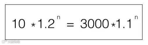 我们假设这个巨头反应迟钝,迟迟不模仿你的创新策略从而达到跟你类似的回报率,那么如果一年周转一次的话,它要等你多久你才能赶上“3000万VS10万”的差距?