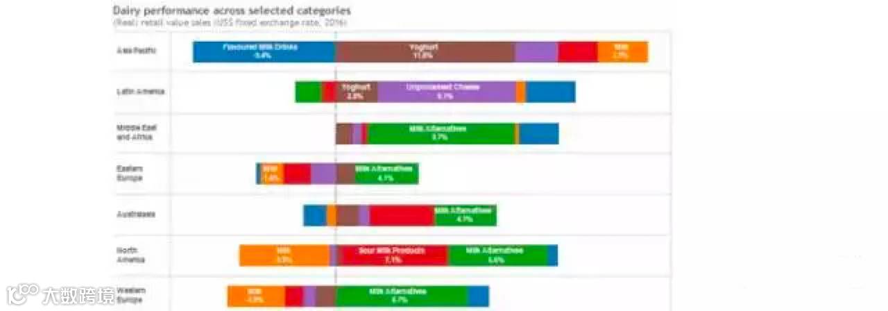 欧美市场与新兴市场是呈现不同的态势,酸奶品类在欧美是放缓,在美国甚至是下滑。