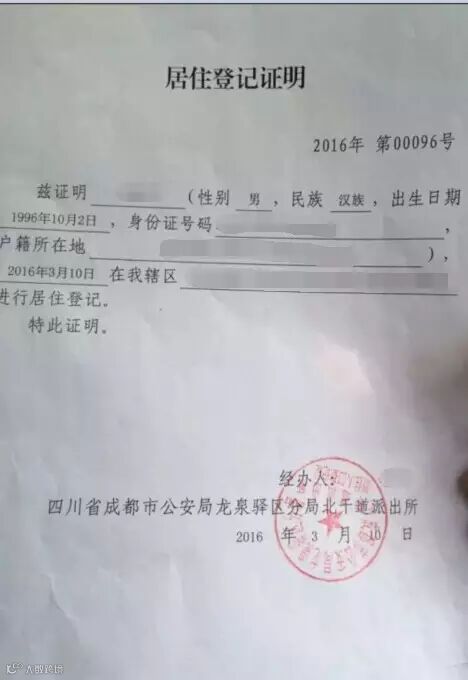 ② 携带相关证件和资料,到居住地派出所进行登记,并拿到派出所出具的登记证明(盖章),登记证明长这样