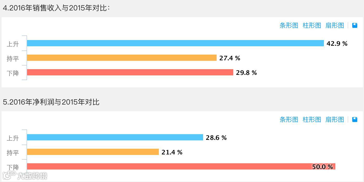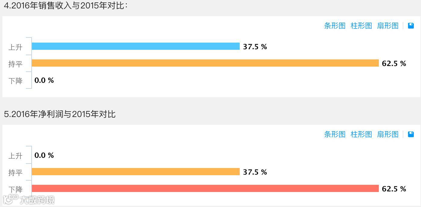 年销售规模3千万-5千万量级的经销商,销售收入和利润指标与上年对比状况: