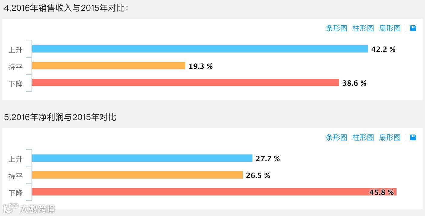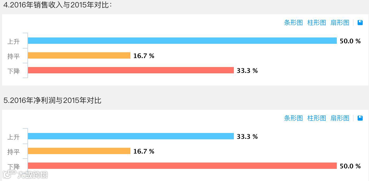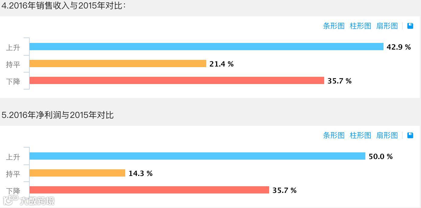 年销售规模1千万以下的经销商,销售收入和利润指标与上年对比状况: