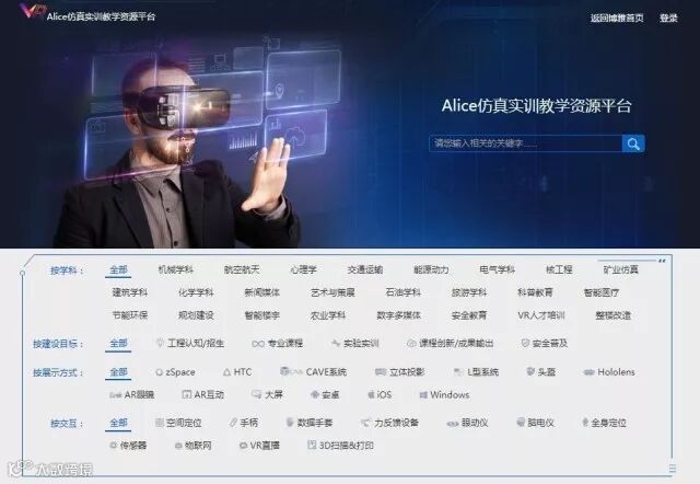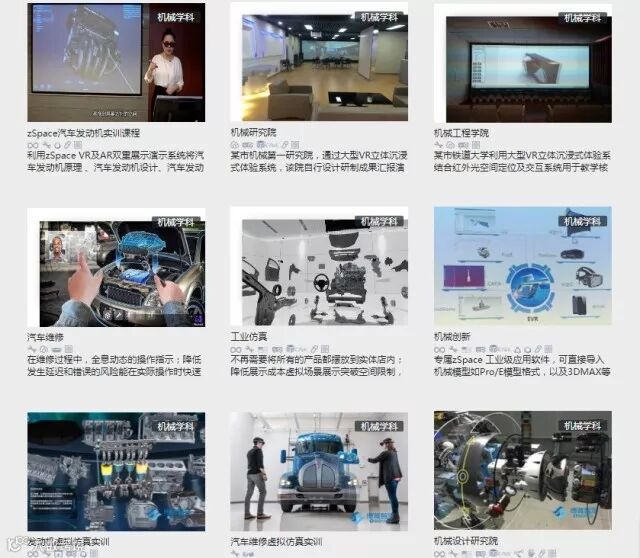 平台围绕VR建设目标,从工程认知、专业课程、实验实训、创新课程、公共安全科普五个模块为切入点,提供了机械、航空航天、心理学、交通运输、能源动力、电气、核工程、矿业仿真、建筑、化学、新闻媒体、艺术与策展、石油、旅游、智能医疗、节能环保、规划建设、智能楼宇、农业学科、数字多媒体、VR人才培训、整楼改造等众多学科领域的仿真实训教学资源。