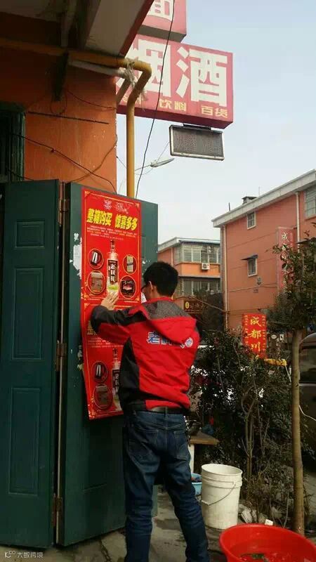 1,将准备好的小物料装进工具袋,携带宣传物料,观察该店粘贴宣传画的位置。