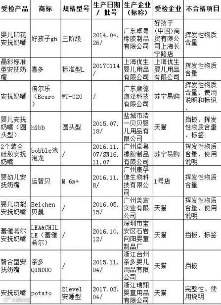 4.好孩子、喜多、倍尔乐等品牌安抚奶嘴不合格