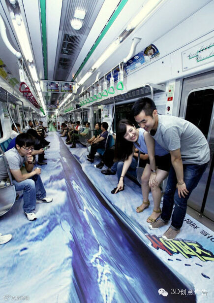 韩国地铁3D广告,狠逼真。夏天一种清凉的感觉!
