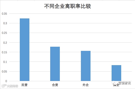 前程无忧发布的《2016中国企业员工离职率调查报告》显示,我国企业离职率非常高。在2016年里,民营企业员工离职率高达32.5%,合资企业、外资企业也超过15%,人员最为稳定的就是国营企业,离职率为8.2%。