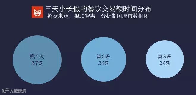 我们统计了三天小长假中每一天的餐饮消费占小长假餐饮消费总额的比例。结果,所有小长假的餐饮消费力无一例外地呈现如下规律:第一天>第二天>第三天。汇总情况如下: