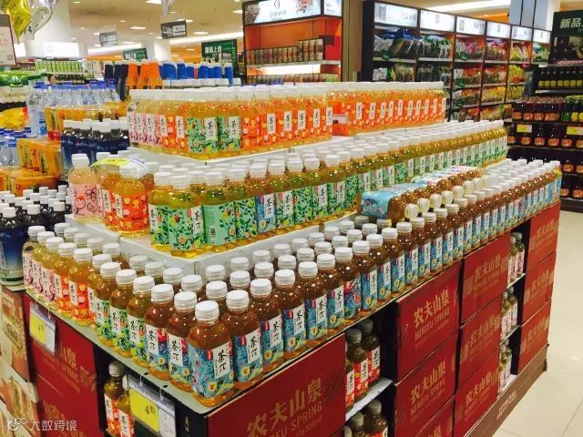 整箱可以高于头顶的顶层货架陈列,以进行形象展示;也可以放在最底层货架以方便消费者拿取。