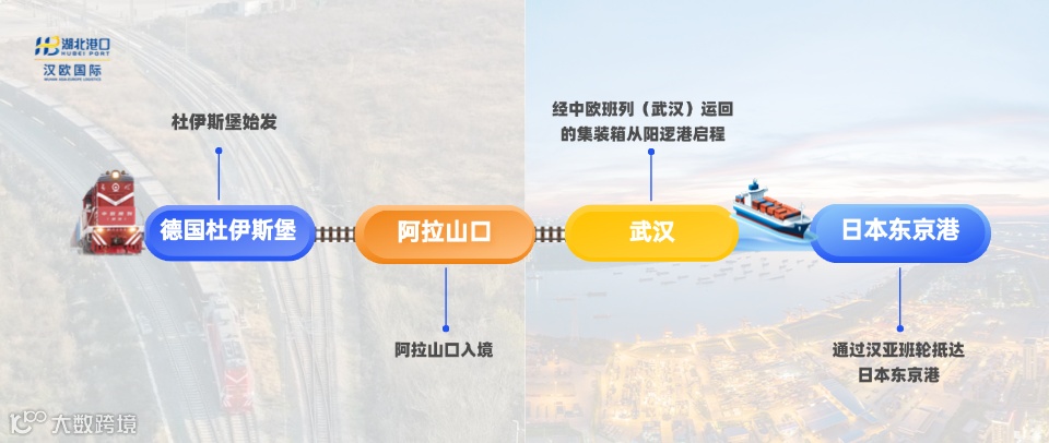 1月27日,一个装载德国产日用品的集装箱经中欧班列(武汉)运回,在武汉阳逻港启程,通过“华航汉亚2号”轮运往日本东京港。该集装箱从杜伊斯堡装车始发,经阿拉山口入境到达武汉后,再通过汉亚班轮转运,全程运输时间预计20天左右,比传统海运方式缩短10天以上,将有效降低企业综合物流成本。