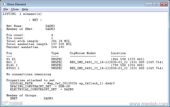 分配好仿真模型之后的网络,使用Show Element命令,可以看到相关的XNET属性,如下图。
