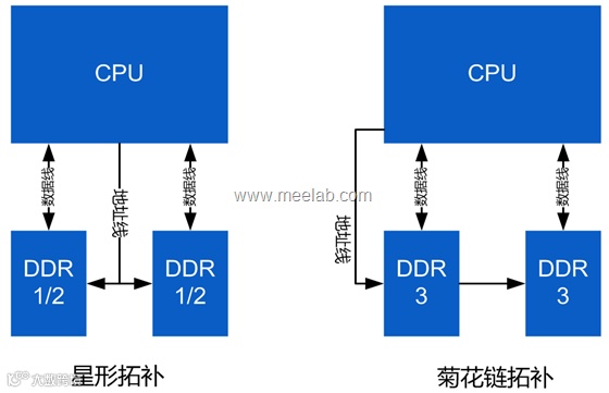 首先要确定DDR的拓补结构,一句话,DDR1/2采用星形结构,DDR3采用菊花链结构。