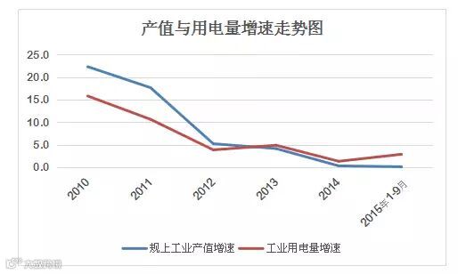 同时期,作为反映工业经济走势先行指标的工业用电量增速也在逐步回落,由2010年15.8%回落至2015年前三季度的2.9%。