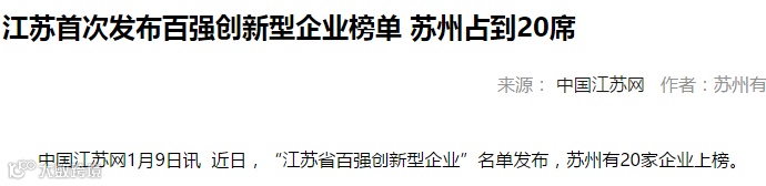 近日,由江苏省科技发展战略研究院首次评选和发布的“江苏省百强创新型企业”名单中,苏州占据20席。
