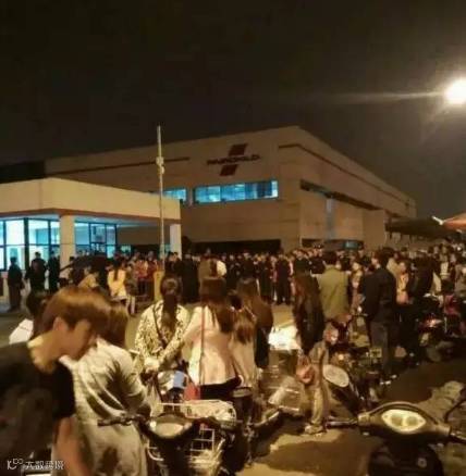 12月9日有约2000多人聚集在工厂门口围堵厂门抗议。