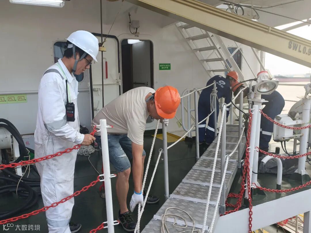 在国内外港口映衬下的奋战身影,